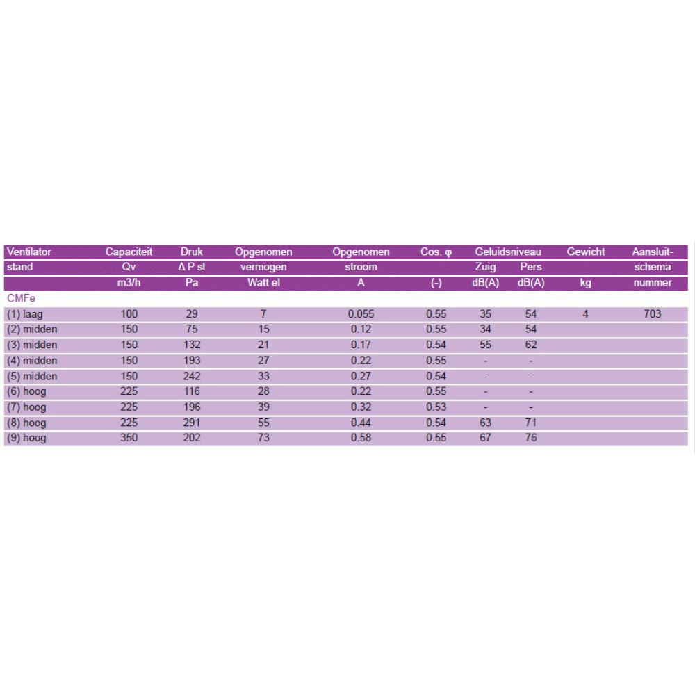 4 voor aanzuig en 1 voor uitblaas