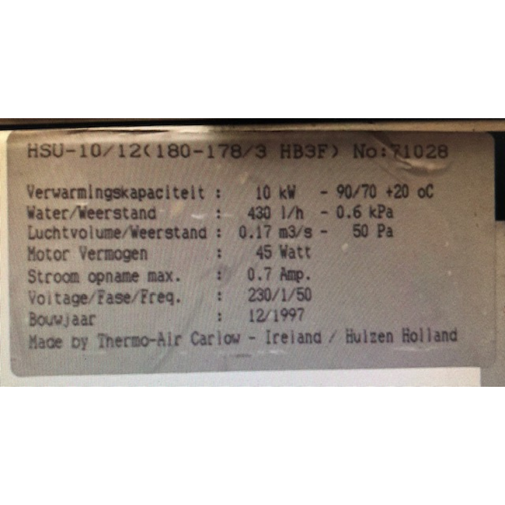 Gereviseerde ruil-ventilator voor Thermo-Air HRU-10/12 luchtverwarming.