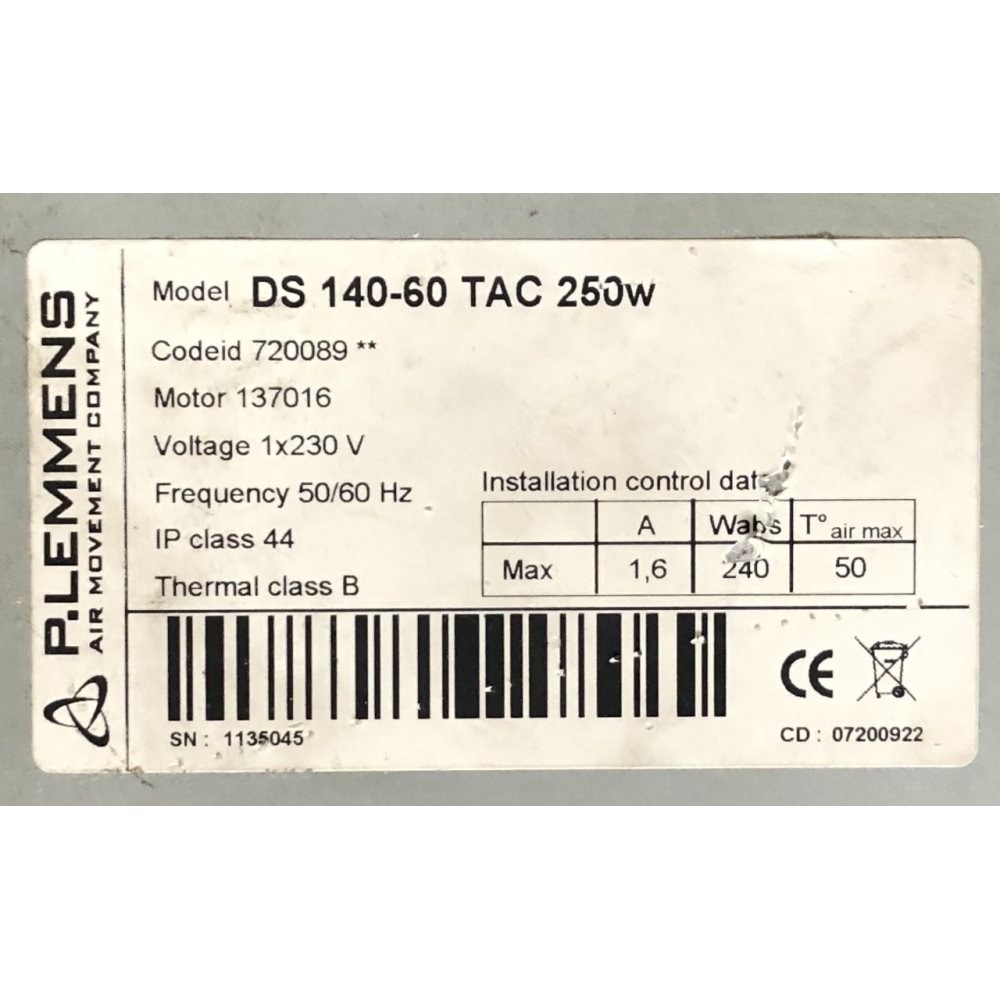 Motornummer = DS140-60 TAC 250w