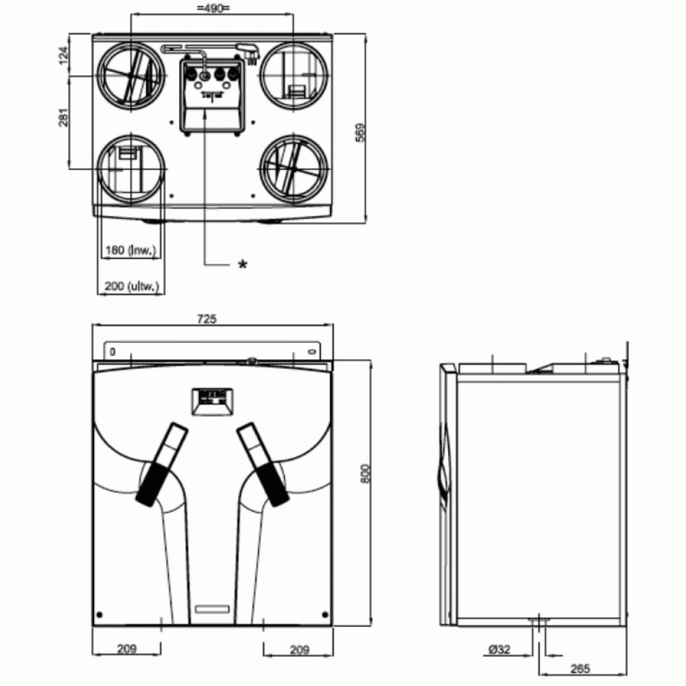 Gereviseerde Stork WHR950 Rechts WTW unit met Bypass en 5 Polige Perilex stekker.