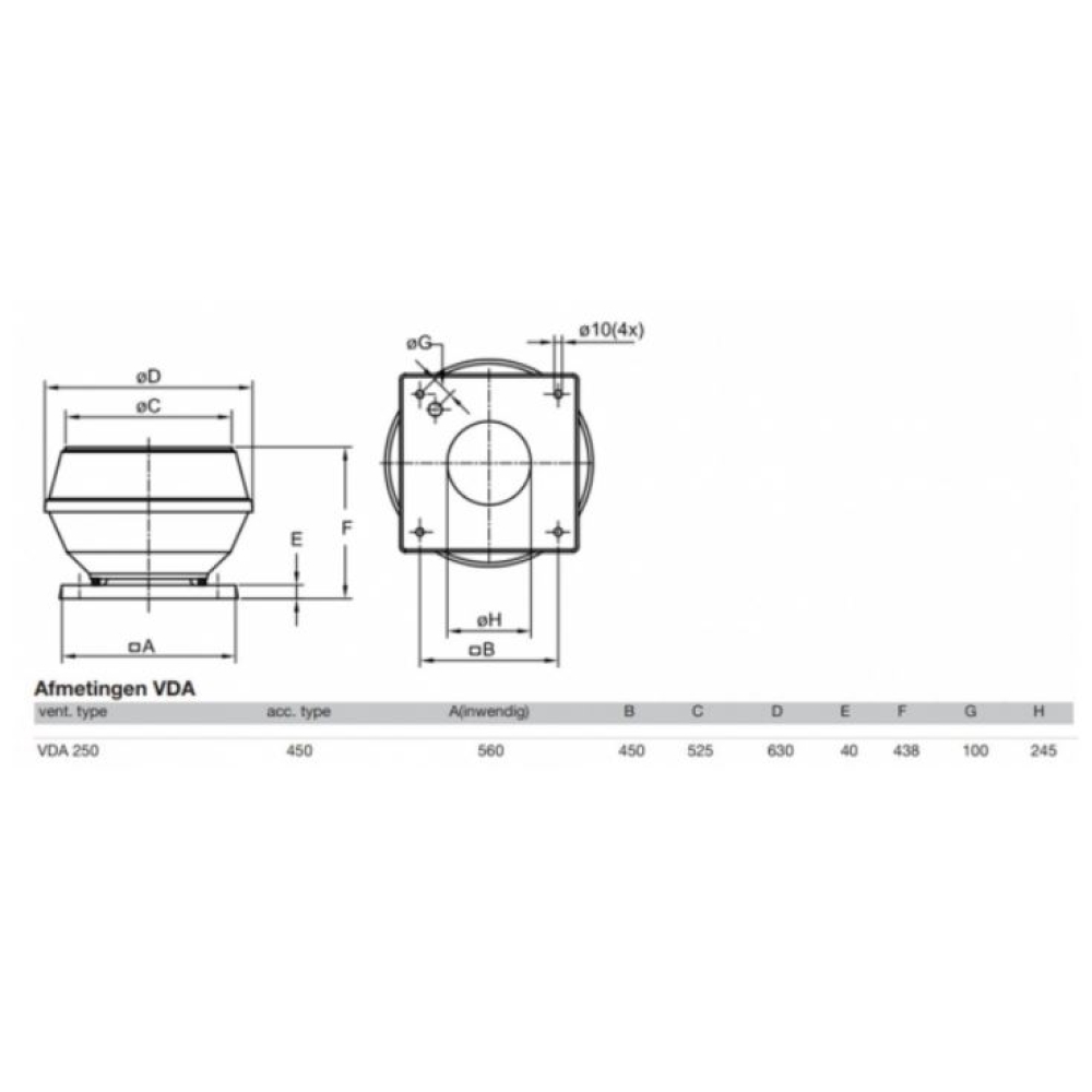 Goede gebruikte Stork VDA250/6D dakventilator met werkschakelaar.