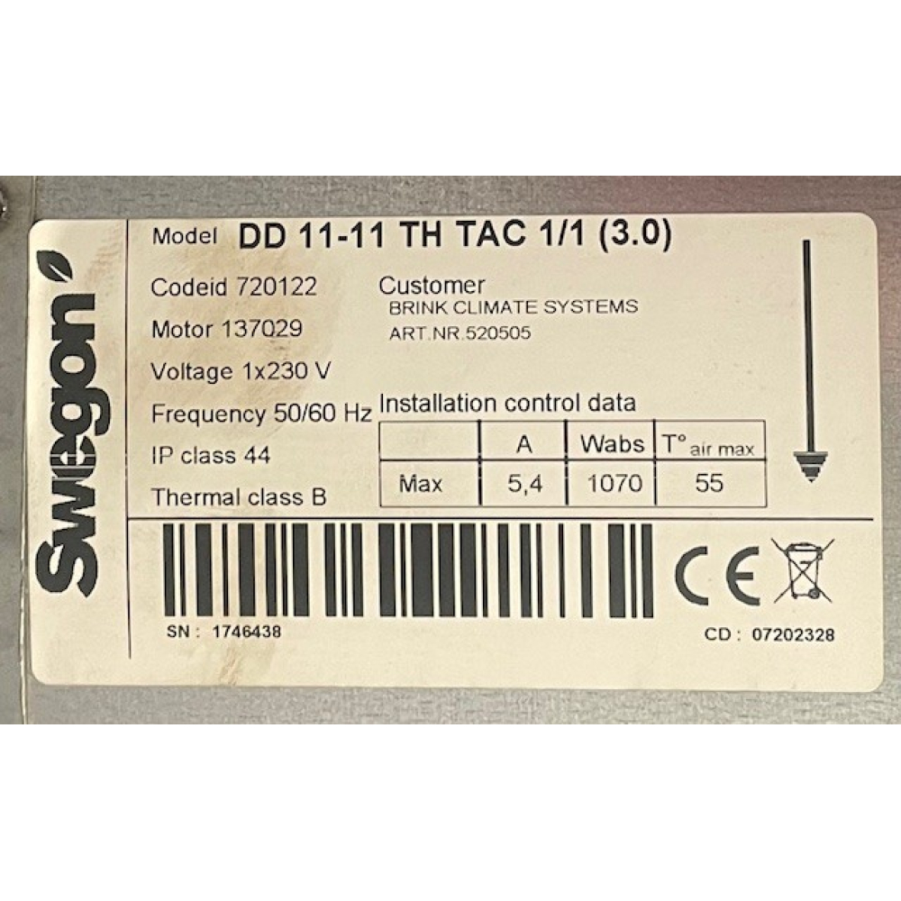 Kort gebruikte systeemventilator Brink B40 HR3400. 531905 DD 11-11 TH TAC 1/1 (3.0)