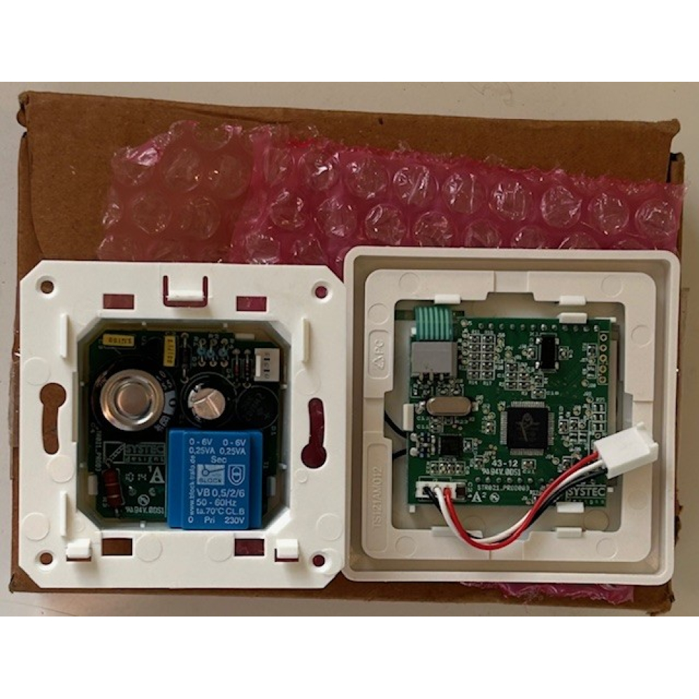 Hij communiceert draadloos met de ventilatiebox maar heeft wel 230v nodig.