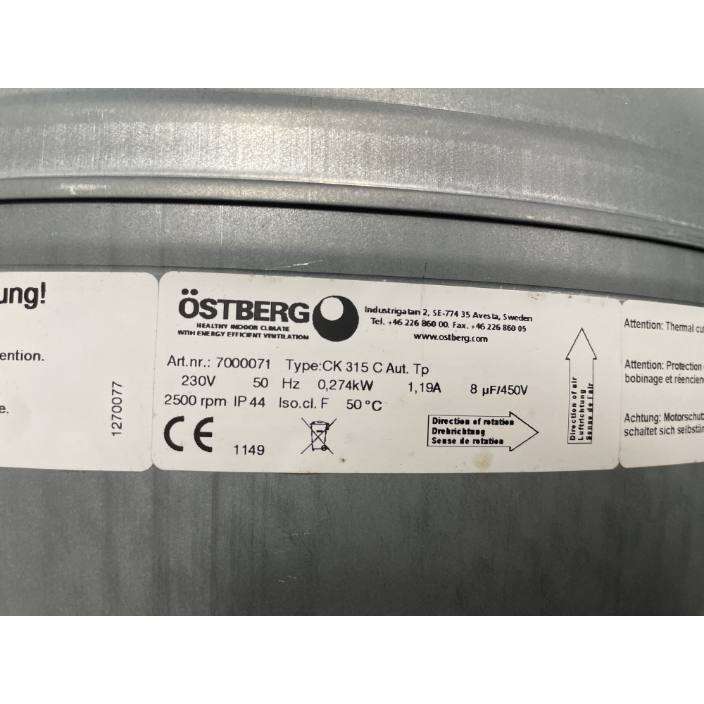 Zo goed als nieuwe Östberg CK 315 C kanaalventilator