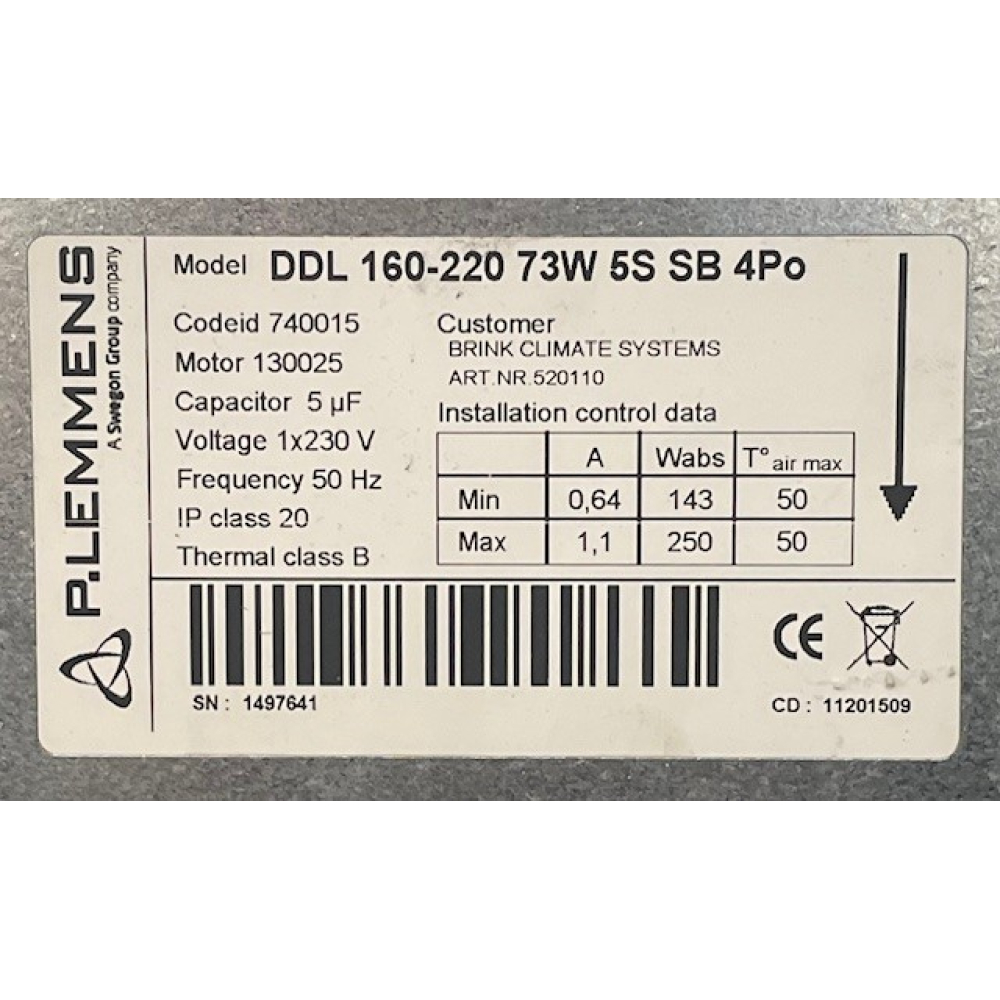 Nieuwe ruil-systeemventilator voor Brink B8 hete luchtverwarming.